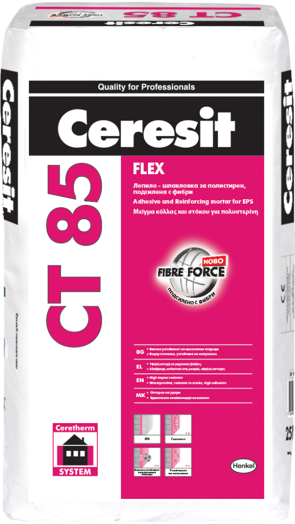CERESIT CT 85 СТРОИТЕЛЕН РАЗТВОР ЗА ЛЕПЕНЕ И ШПАКЛОВАНЕ НА ТОПЛОИЗОЛАЦИОННИ ПЛОСКОСТИ ОТ ПОЛИСТИРЕН